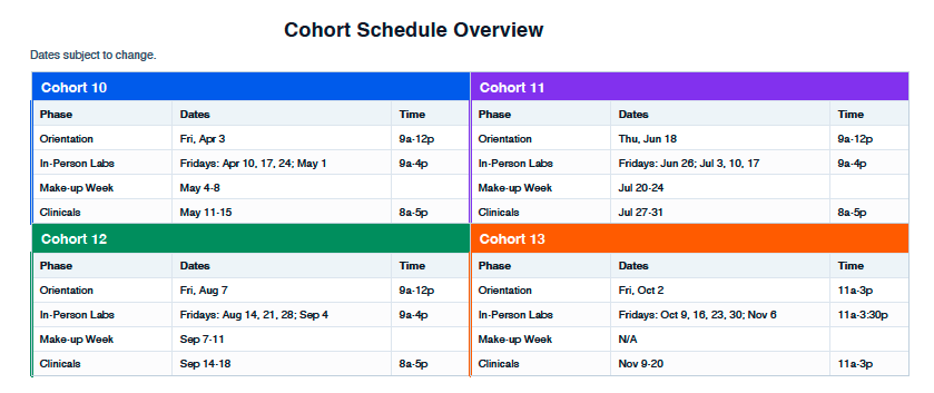 - Format: A mix of online, on-demand instruction (41 hours) + in-person sessions (23 hours of classroom/lab + clinicals) so you get both theory and hands-on practice.